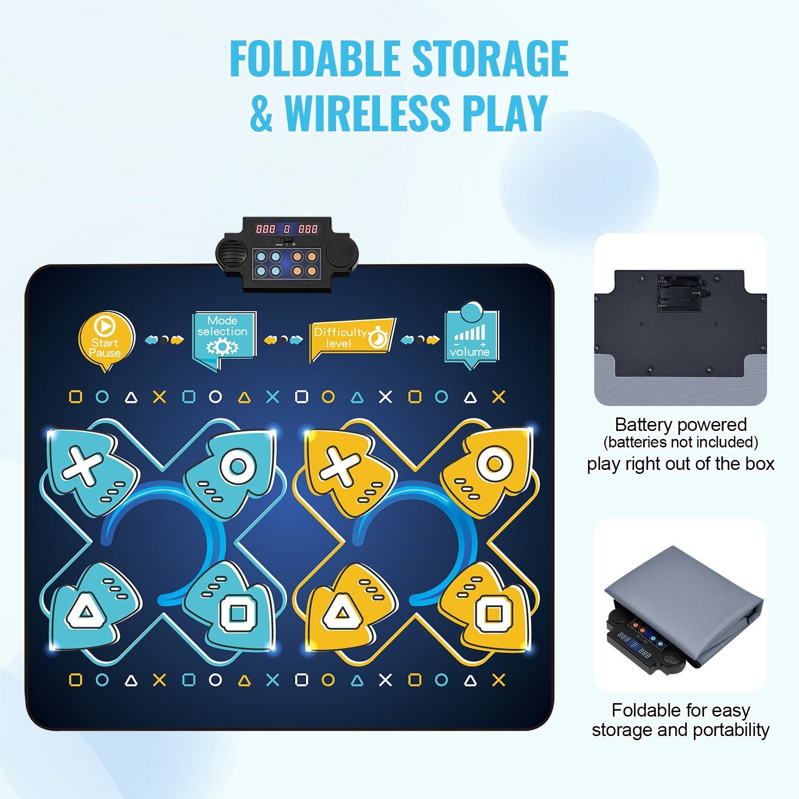 Easy to Store and Carry: Fold, go, and dance anywhere! Lightweight and soft, this dance pad folds neatly for easy storage, saving your space. With its wireless and portable design, it runs on 3 AA batteries (not included), so you can dance anytime, anywhere – no cords or hassle!